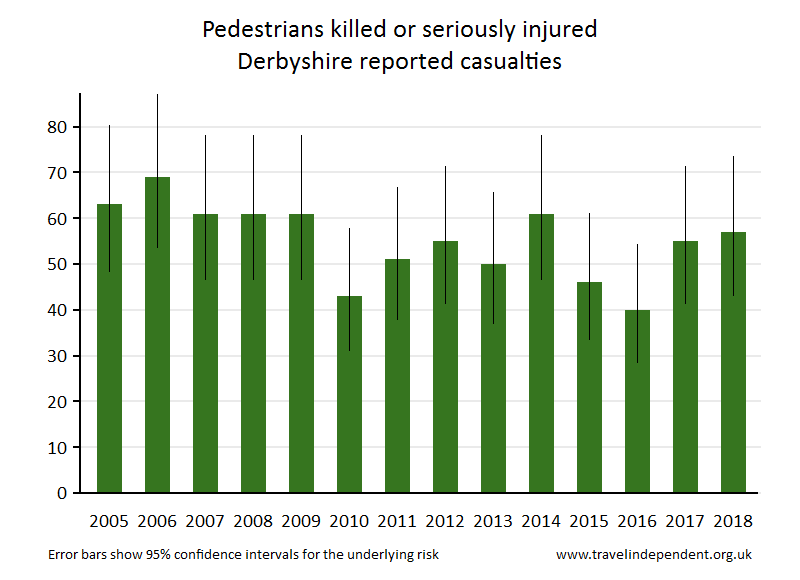 | Derbyshire Reported Road CasualtiesThis web page shows data only up to 2018. For tables and charts that include 2019 data for each police area and each local authority, go to pedestriansafety.org.uk/stats.php