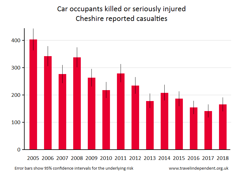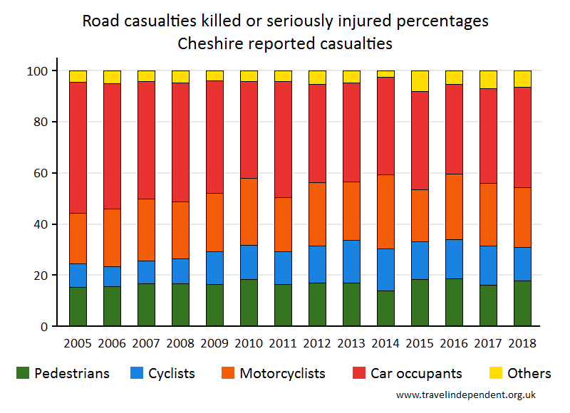 | Cheshire Reported Road CasualtiesThis web page shows data only up to 2018. For tables and charts that include 2019 data for each police area and each local authority, go to pedestriansafety.org.uk/stats.php