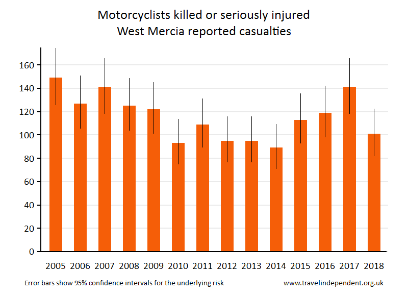 | West Mercia Reported Road CasualtiesThis web page shows data only up to 2018. For tables and charts that include 2019 data for each police area and each local authority, go to pedestriansafety.org.uk/stats.php