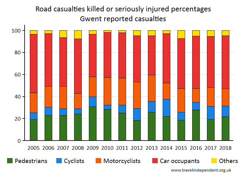 | Gwent Reported Road CasualtiesThis web page shows data only up to 2018. For tables and charts that include 2019 data for each police area and each local authority, go to pedestriansafety.org.uk/stats.php